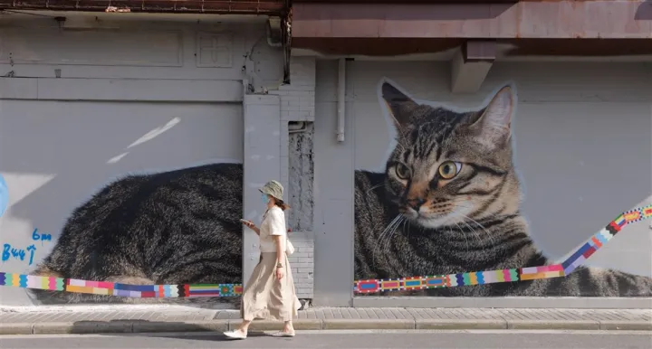 Shanghai has transformed into a vibrant hub for selfie tourists, thanks to Shanghai-born cartoonist Gao Youjun, aka Tango, who has adorned Fangbang Middle Road with colorful cat murals of local felines, turning the historic city street into an open-air gallery.