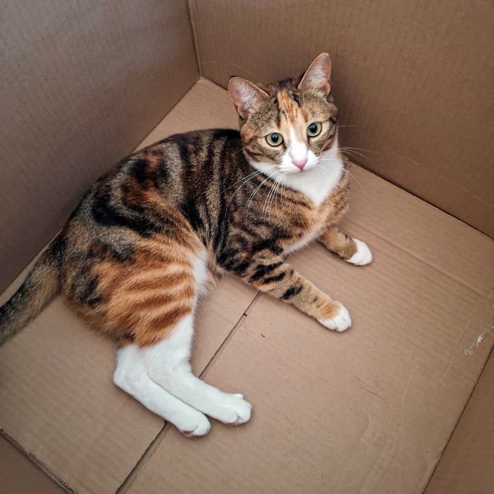 Cats are the same—they just seek out different ways to invite comforting pressure onto their bodies. In a box, a cat has to curl up into a ball in order to fit, which keeps them tight and cozy.
